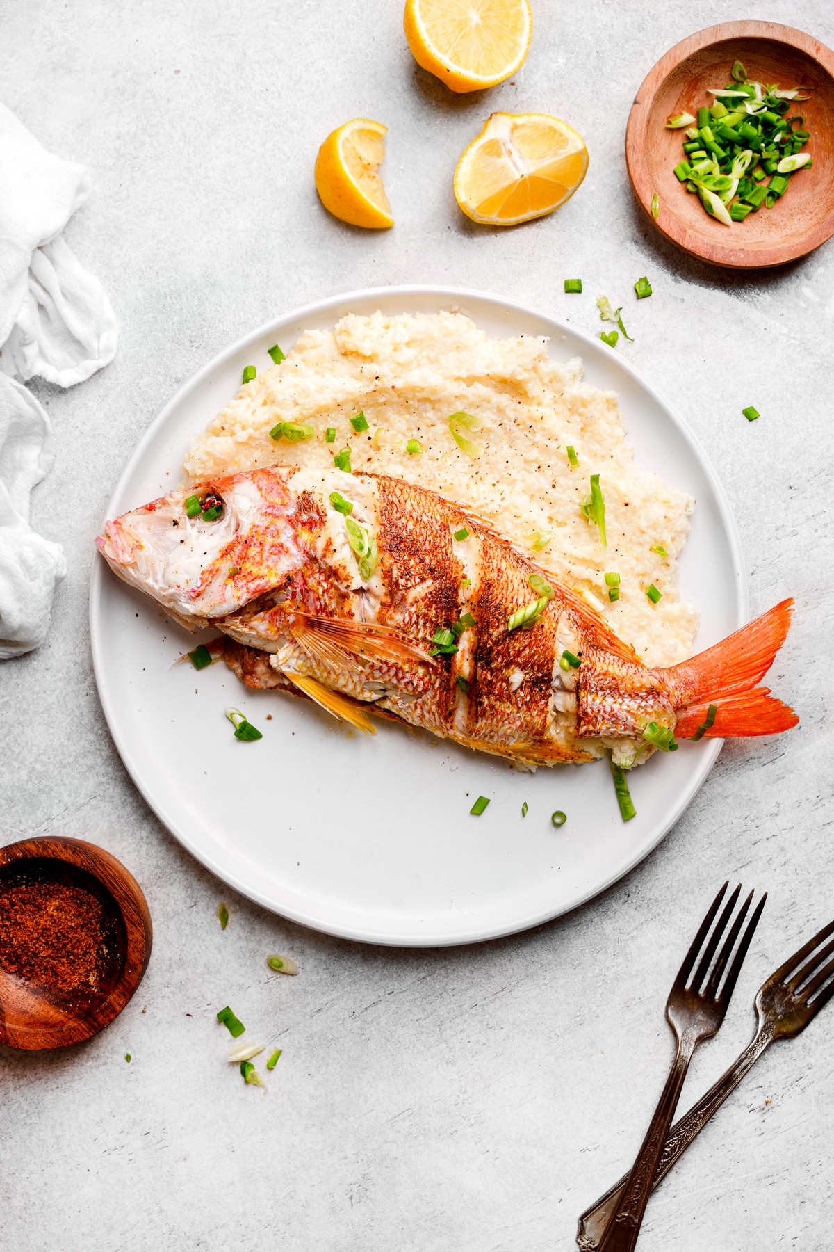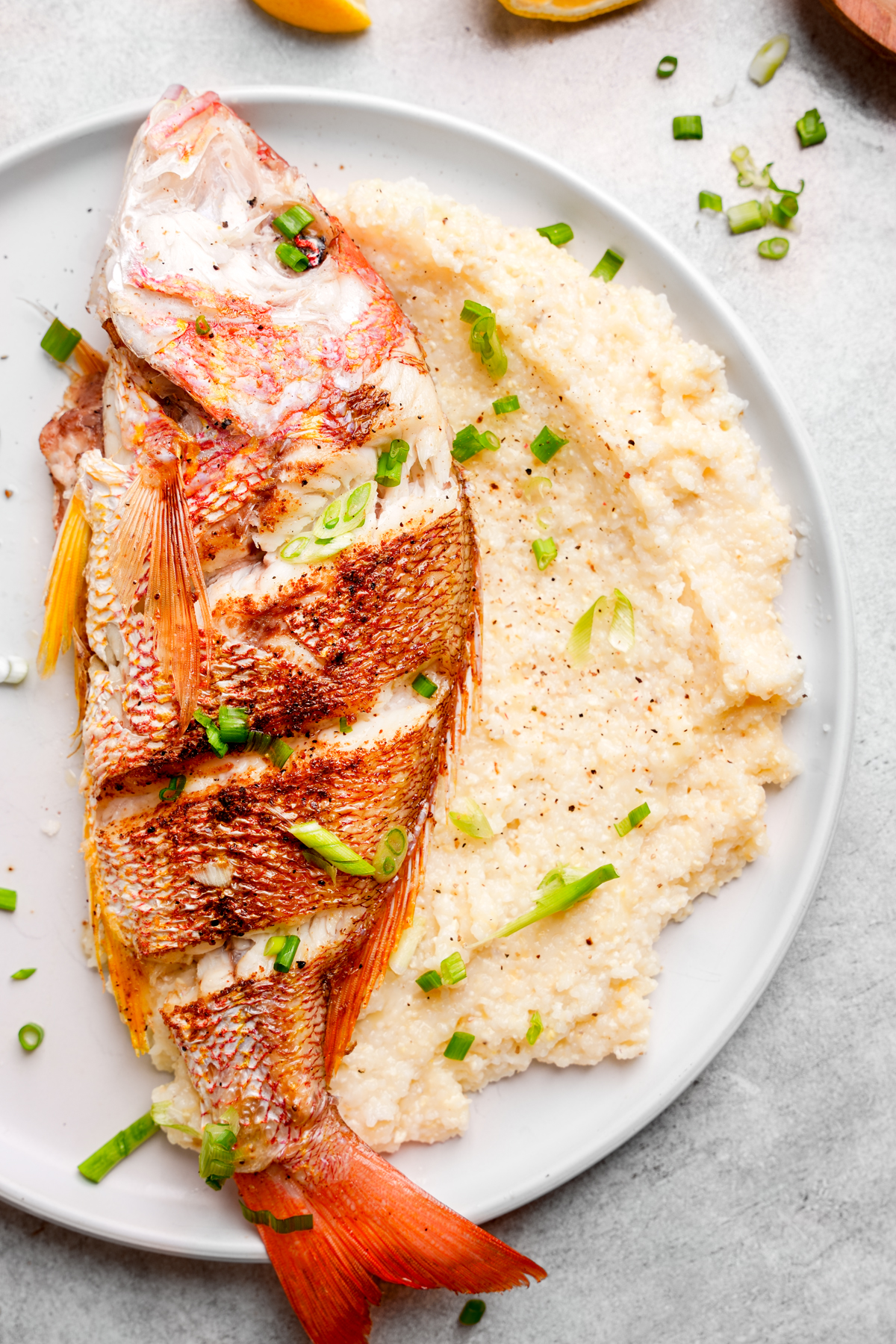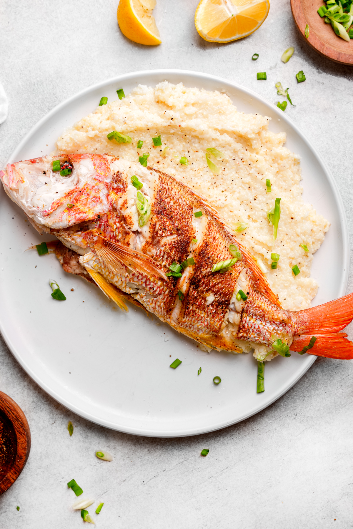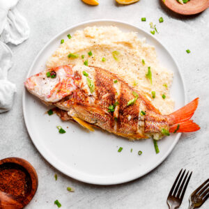 - Fish – You can make this fried fish and grits recipe with any kind of fish. I used a Whole Lane Snapper. It is known for its mild flavor and firm texture, making it the perfect fish for frying.